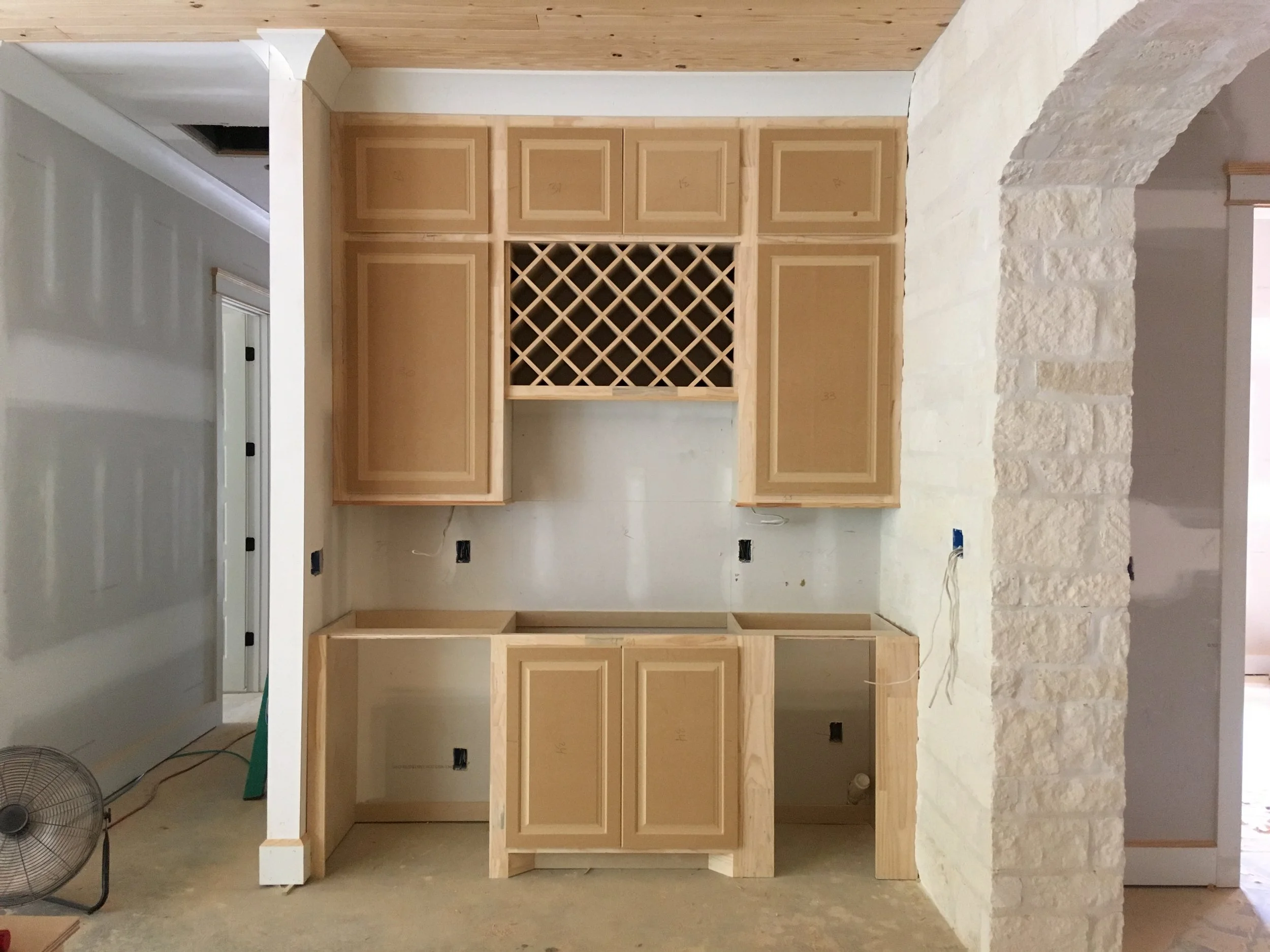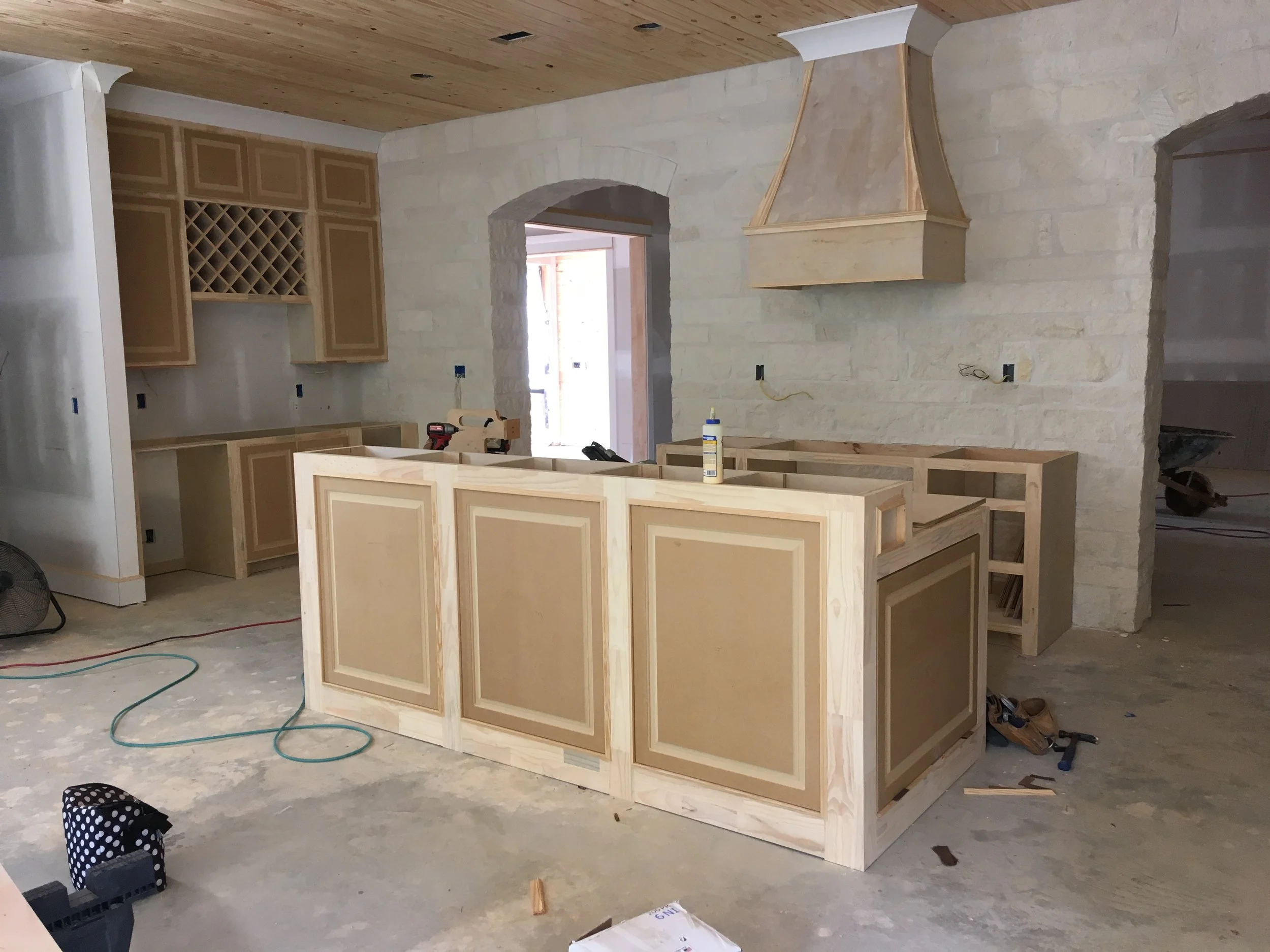 Services include stander cabinets (built at location of house). Installation of door, drawers only from local manufacturer. And the installation of all doors/drawers hardware.
